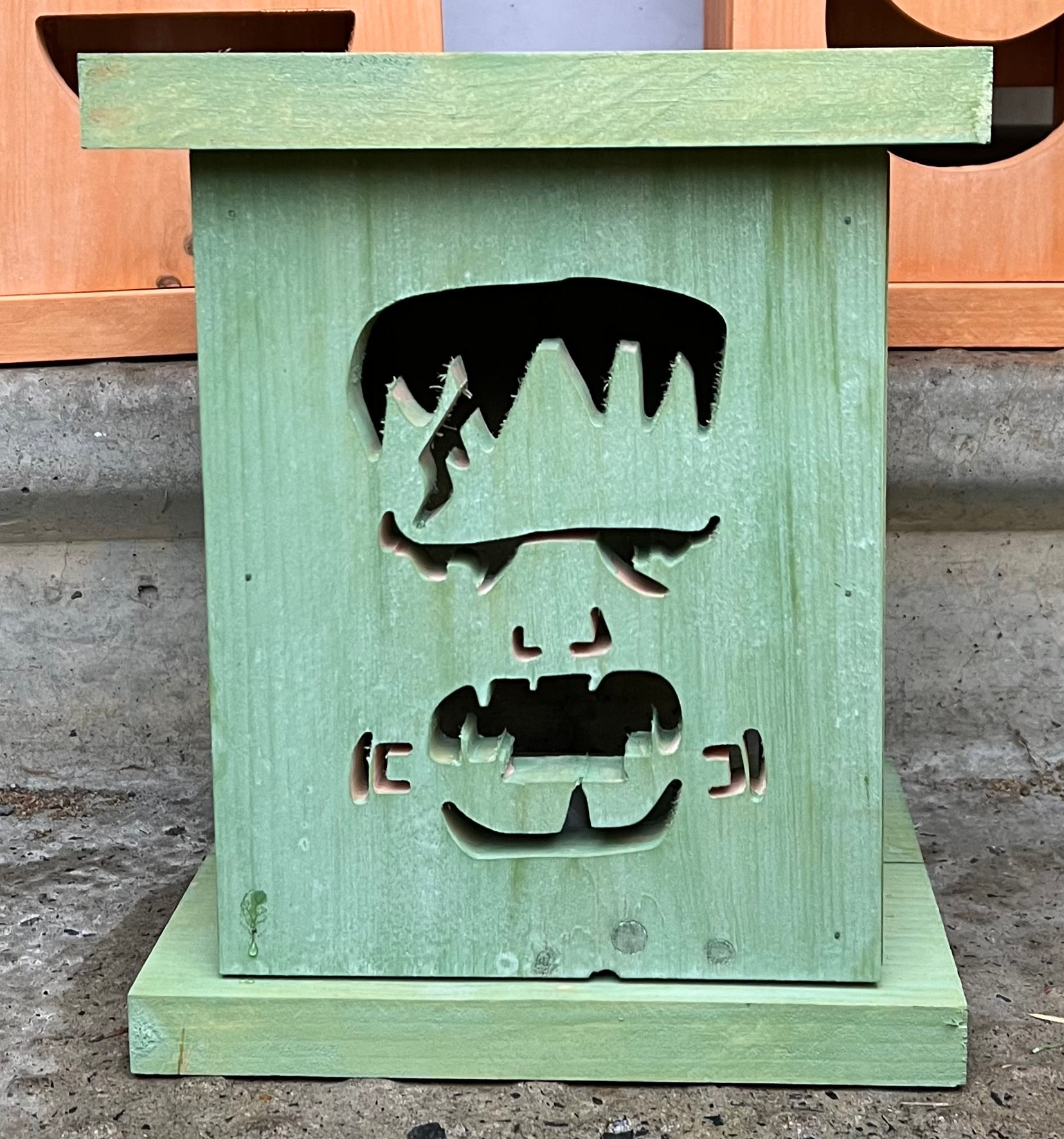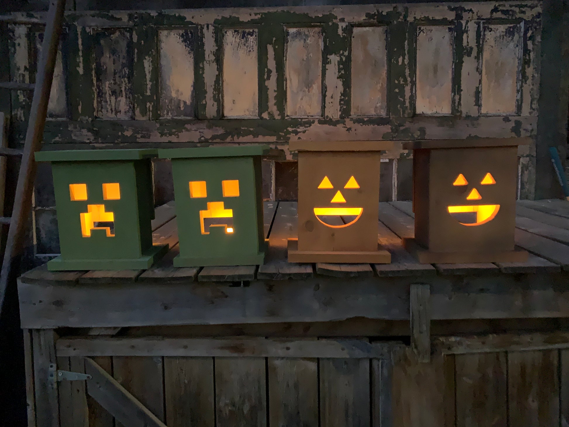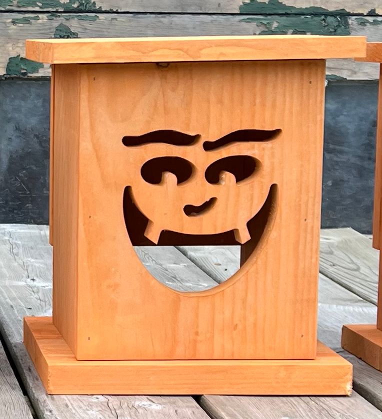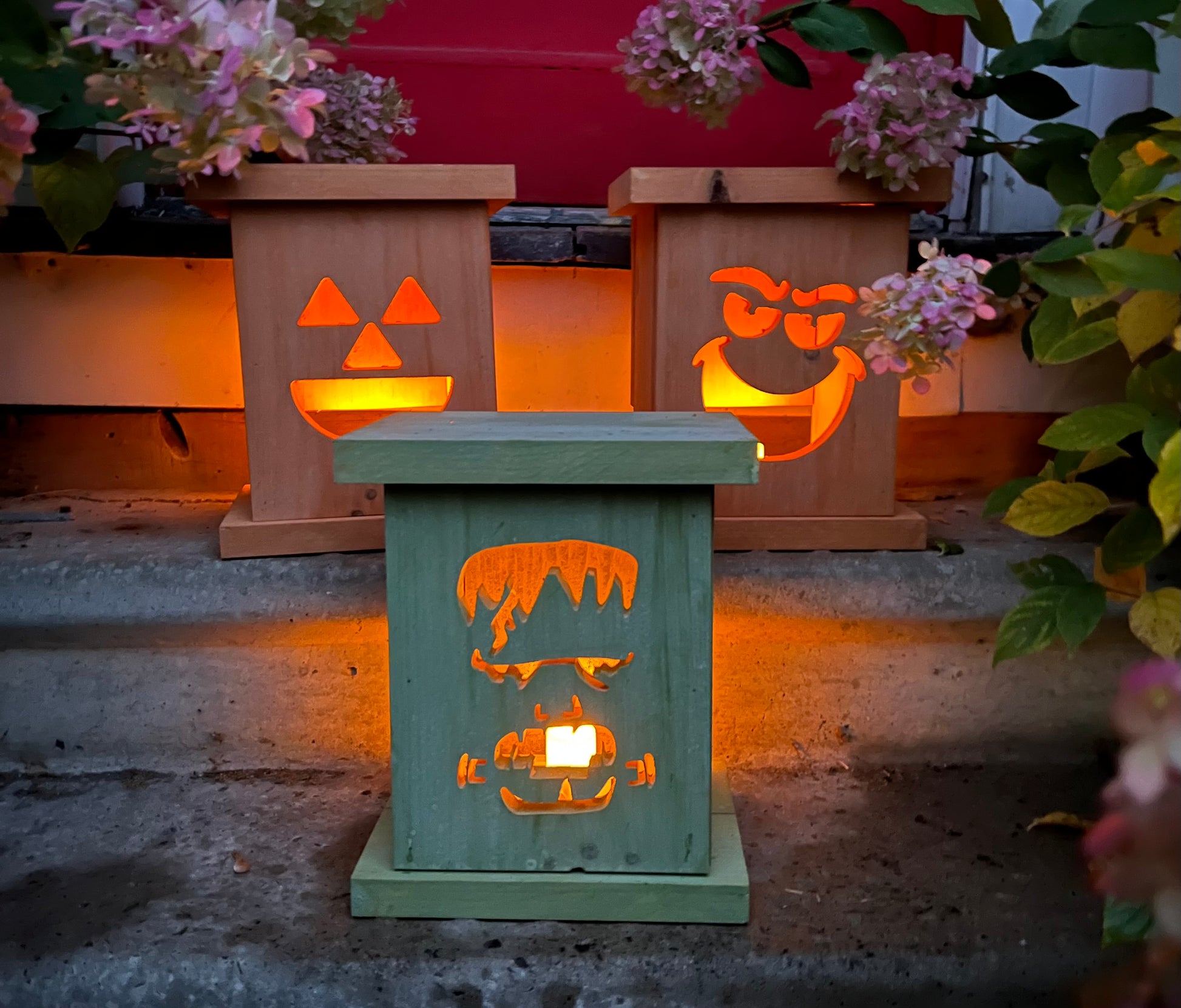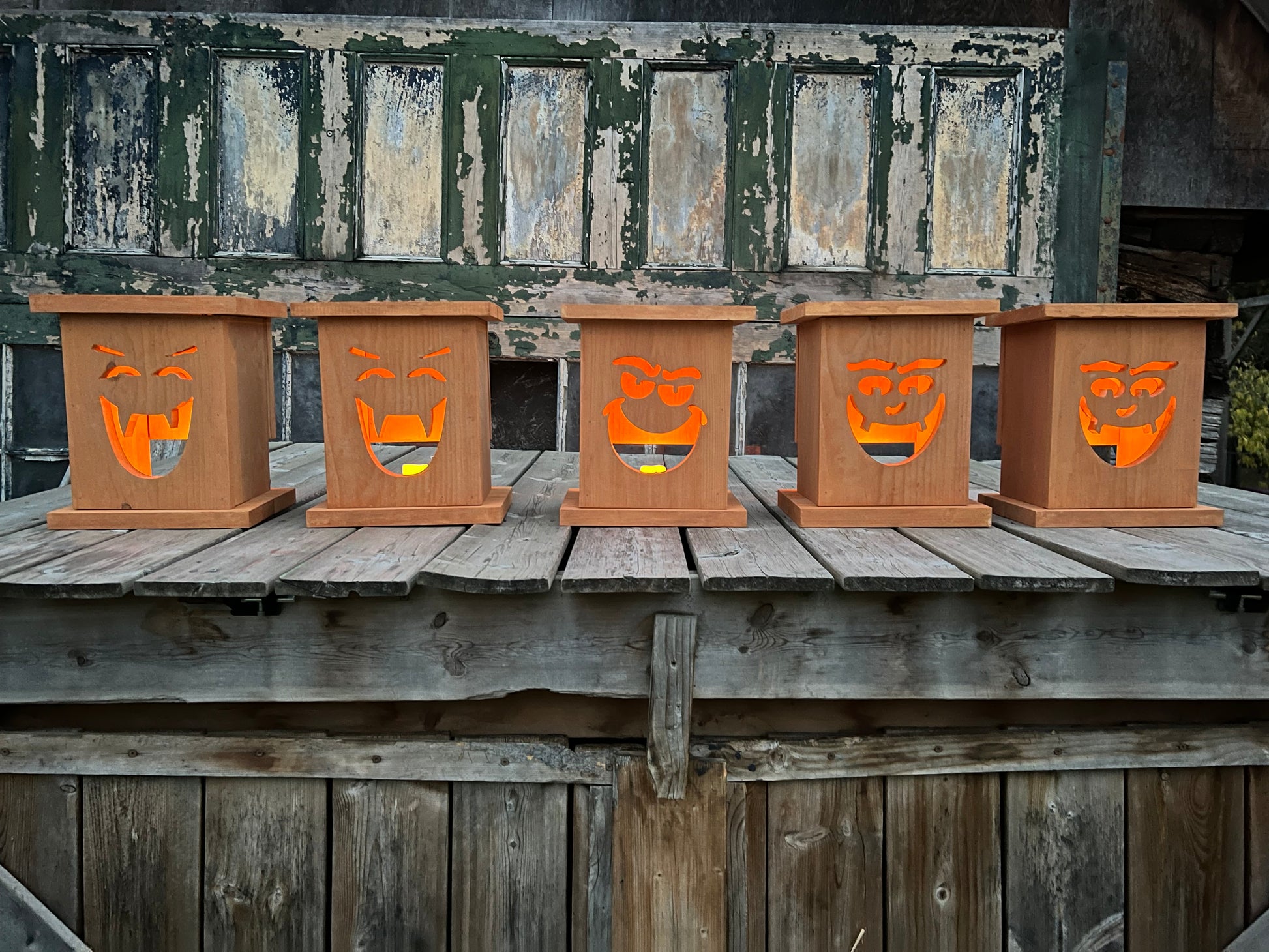 Made of knotty pine, these wooden jack-o-lanterns make a great reusable halloween decoration for your porch or inside your home. Finished with milk paint, they offer a rustic touch for any decor.